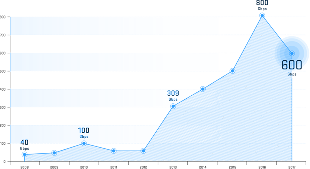 DDoS attacks are getting bigger and more complex. With limited bandwidth and sophistication, other DDoS mitigation service providers can no longer mitigate or prevent today’s multi-vector DoS and DDoS attacks.